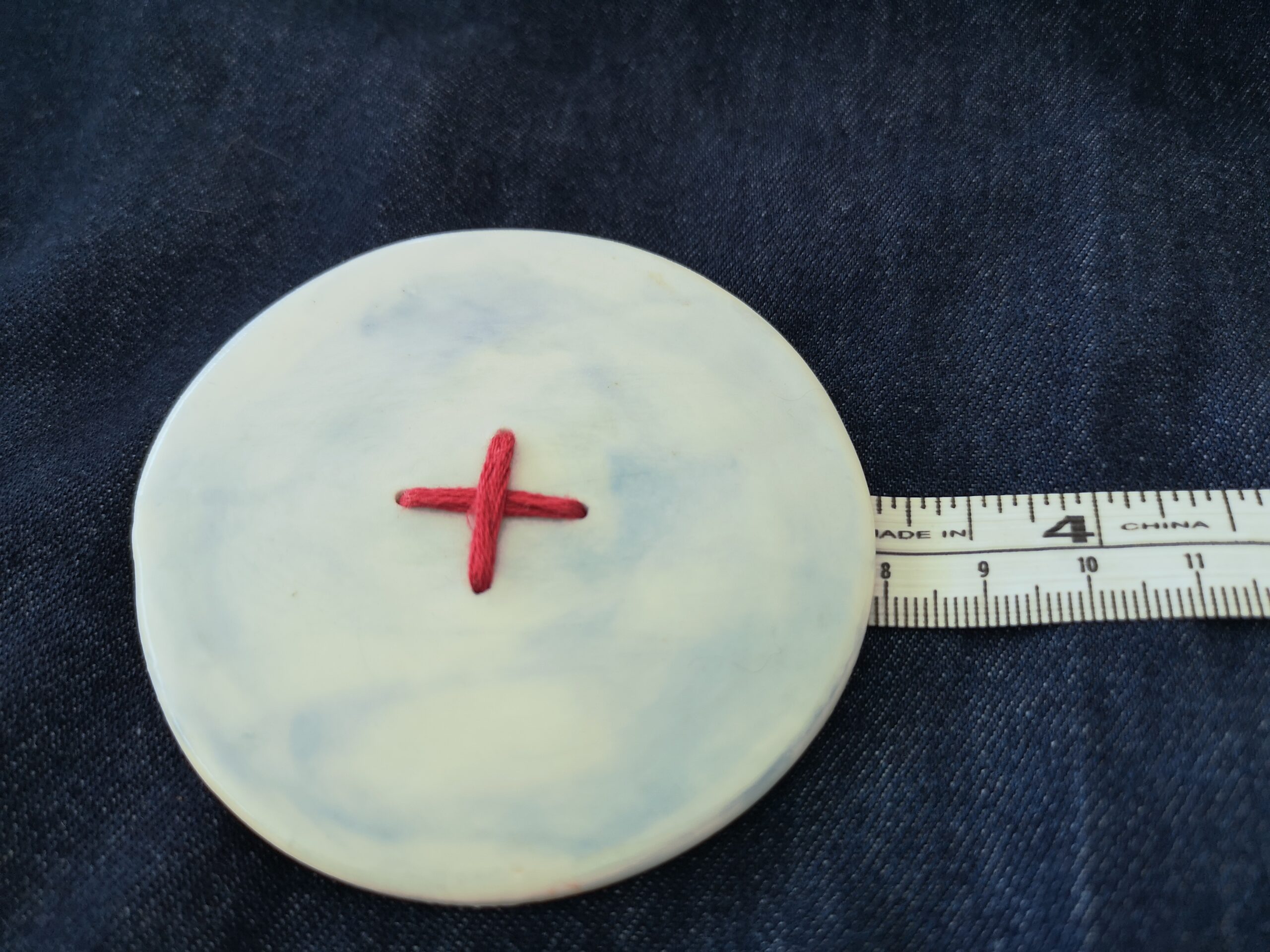 These oversized ceramic brooches take something sensible and blow it delightfully out of proportion. Hand formed, hand painted, and glazed to glossy perfection, each one features a stitched centre detail that suggests permanence — but offers none. Chop and change, style on a dress, a bag, a jacket because we are all about the notions & nonsense.