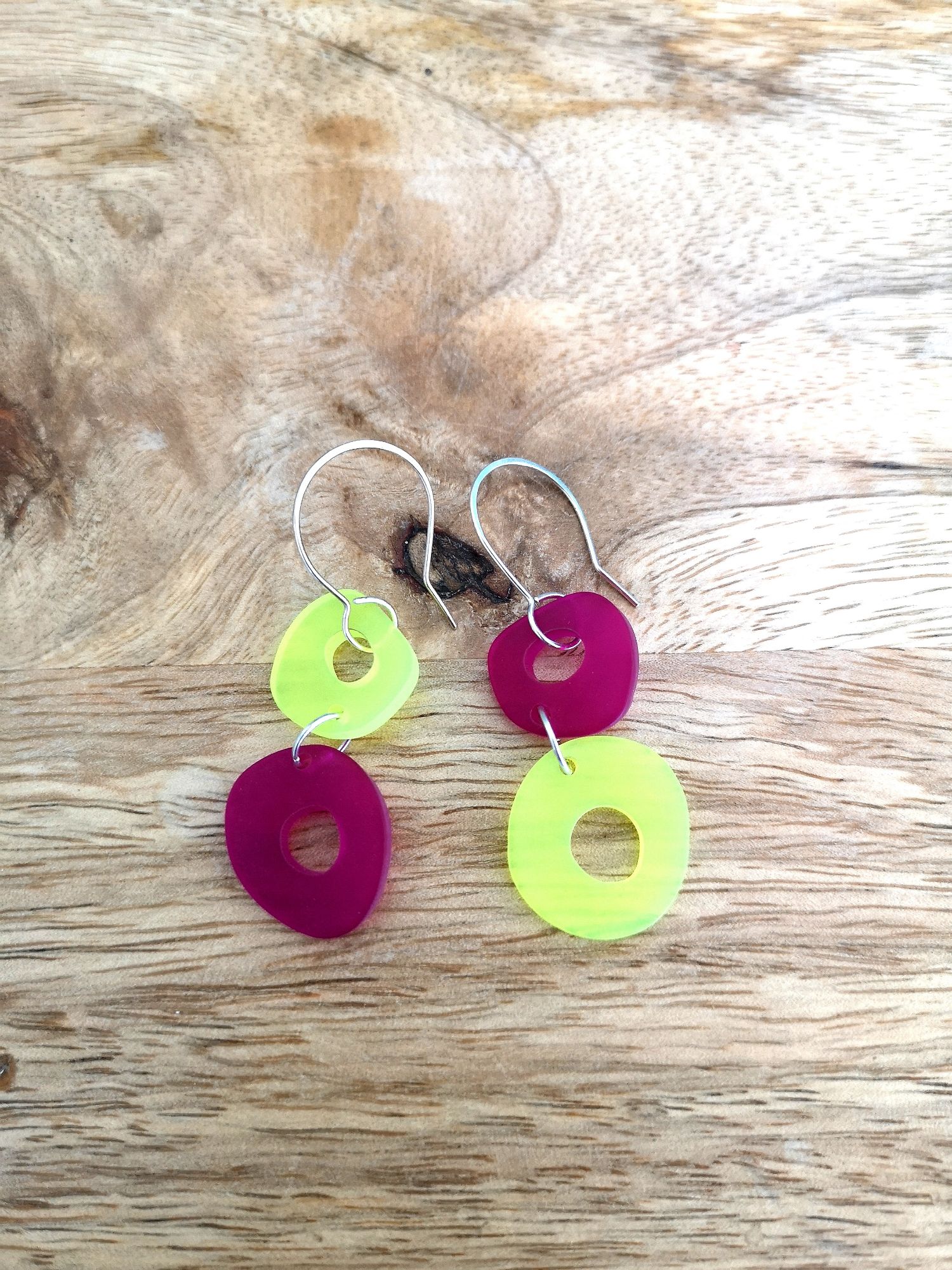 Retrofuturist Two is what happens when the 70s took a weekend trip to the 80s and came back neon and unapologetic. In Psy Citrus and Fuchsia on sterling silver hooks, these 55mm frosted beauties are here to beam you straight into your main-character timeline.